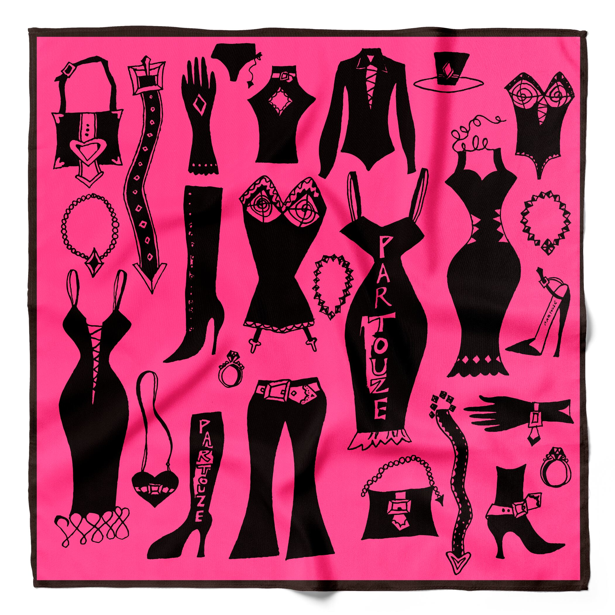 魅惑的でセクシーなボディコンシャスモチーフをデザインした『コスチューム』柄のハンカチ。ドレスやブーツ、アクセサリーなど、お洒落欲を駆り立てるセクシー&キュートなアイテムがちりばめられています。甘くなりすぎないヴィヴィッドなピンクとブラックのカラーリングもGOOD。大人スタイルにも、ガーリースタイルにも、コーディネイトにプラスすれば、おしゃれ度アップ◎自分用にはもちろん、プレゼントにもオススメです。