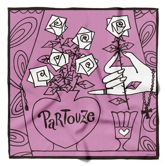 ハート型の花瓶に生けた薔薇がロマンティックで印象的な『恋占い』のハンカチです。美と愛の象徴として人々を魅了し、幸福を届け続ける薔薇のイラストに心がときめきます。パープルのカラーリングをベースに美しさ・華やかさ・気品を兼ね備えた上品なデザインで、使う姿もエレガントに魅せてくれます。オールシーズン飽きずに使える、女性の身だしなみに欠かせない上質な1枚です。大切な方への贈り物にもおすすめです。