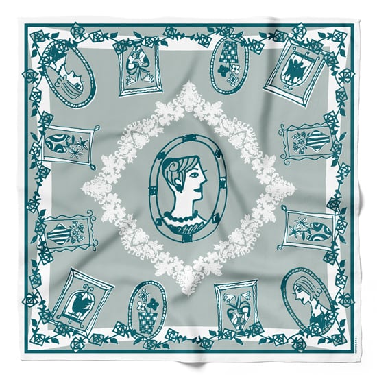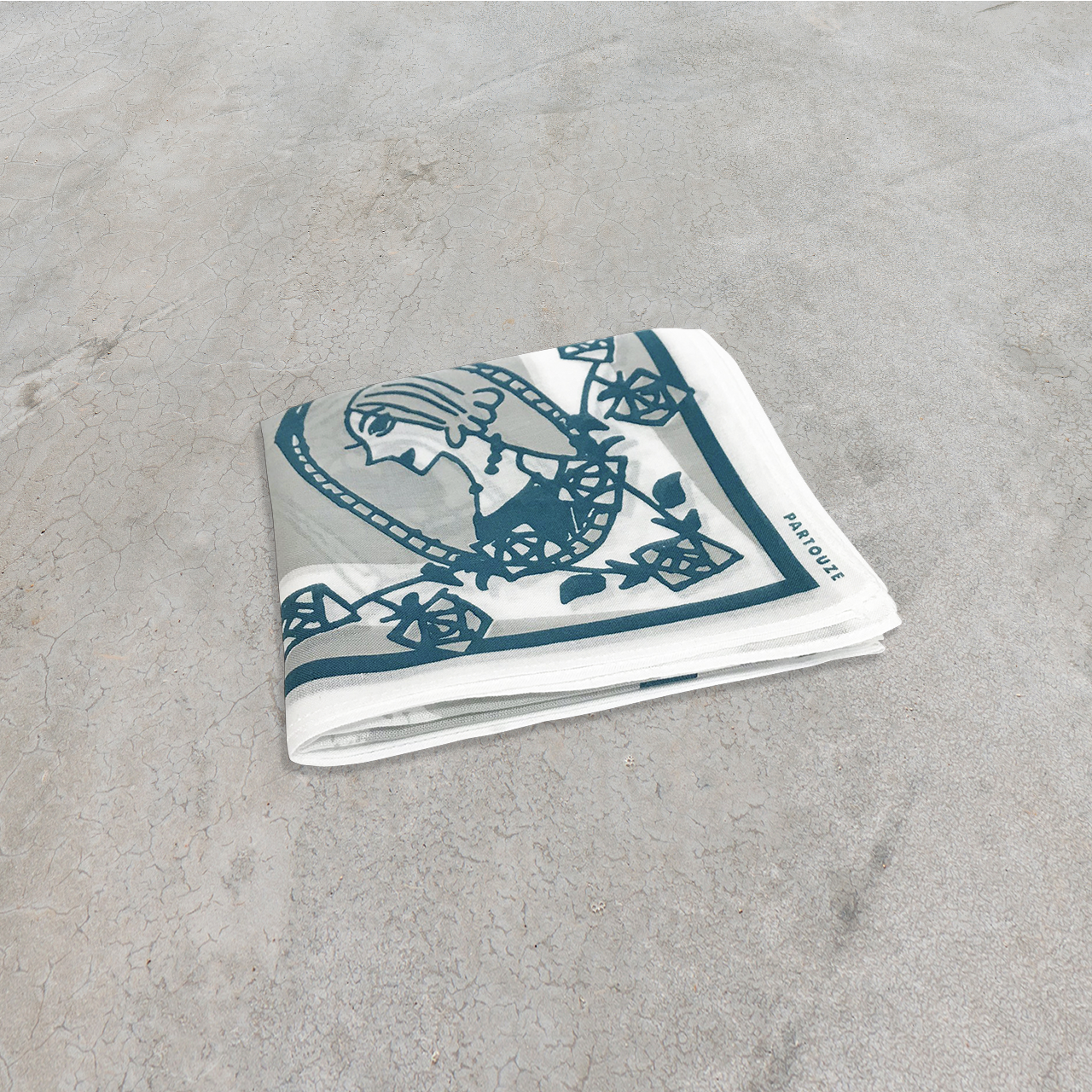 気品溢れる華やかな貴婦人のイラストが魅力的な、大人の女性に似合うハンカチ。ネイビーグリーン×アイスグレーのコントラストの効いたカラーリングと、薔薇の縁取りが、上品かつエレガントな雰囲気を演出します。お洒落なデザインで描かれた花瓶のイラストも魅力的。使う姿も美しくエレガントに魅せてくれるデザインは、ご自身用はもちろん、大切な方へのちょっとしたギフトにもおすすめです。