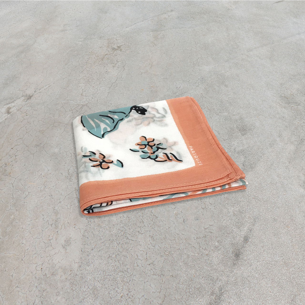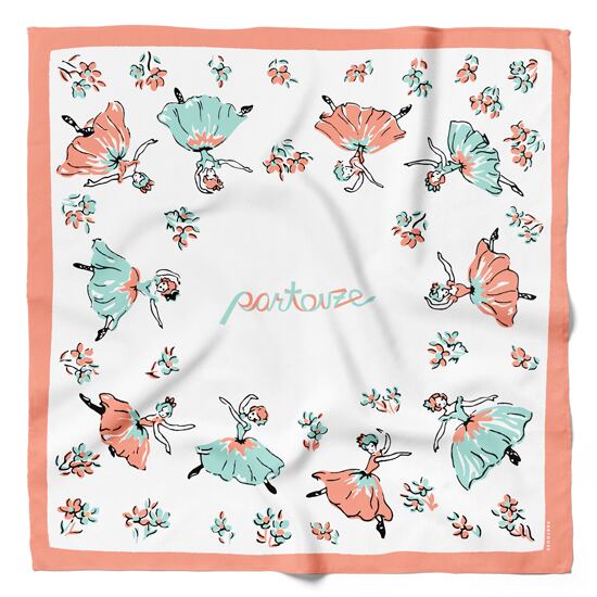 優雅な音楽の調べに合わせ、軽やかに踊るバレリーナを描いた『ロンド』のハンカチ。乙女心をくすぐる愛らしいバレリーナの周りには、可憐なフラワーをちりばめて、ロマンティック&フェミニンな雰囲気を演出しています。淡いパステルトーンの、柔らかな女性らしいカラーリングも魅力を高めます。端を配色にして、メリハリもプラスしました。ご自身用はもちろん、ギフトとしても喜ばれる1枚です。